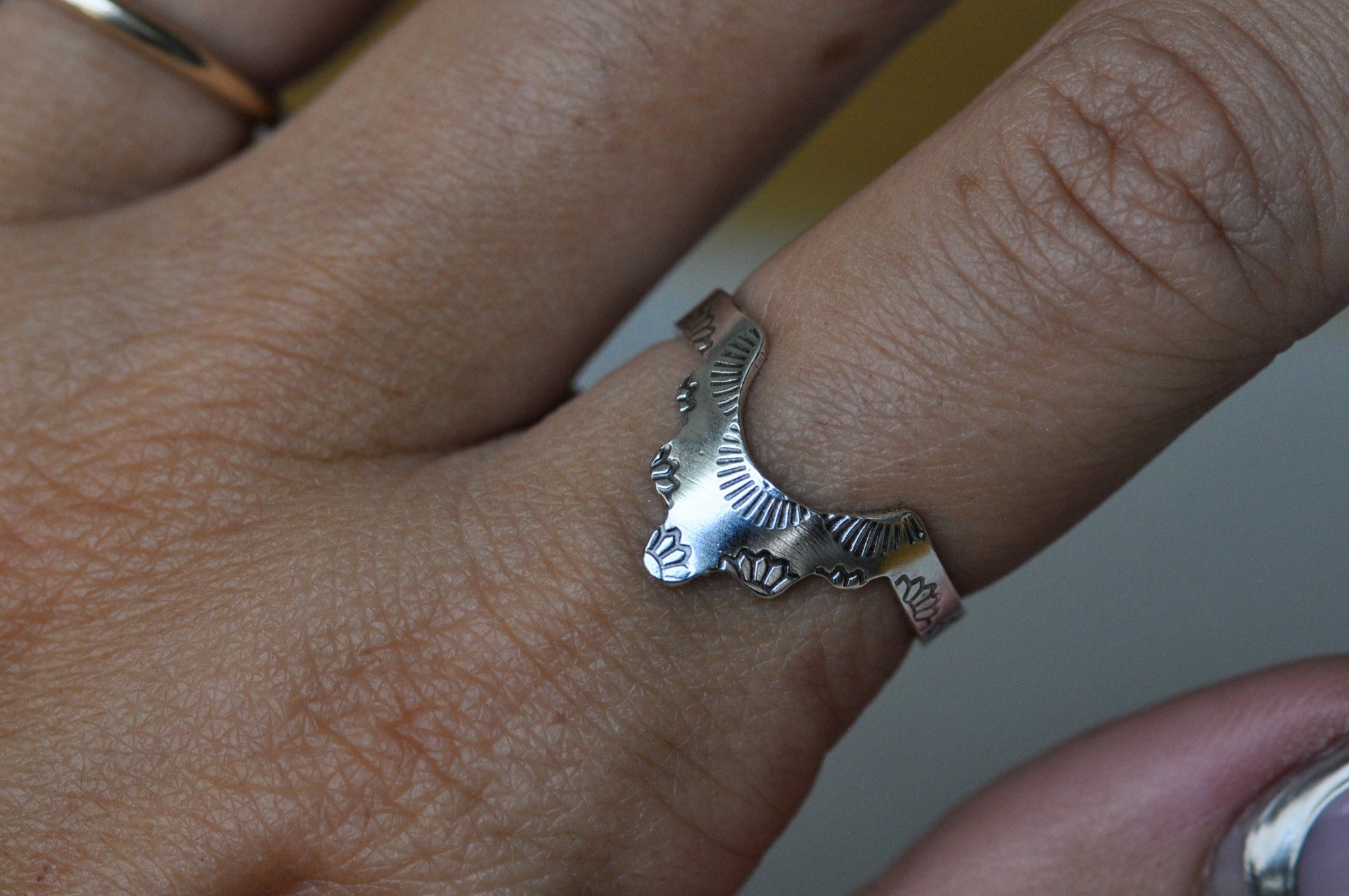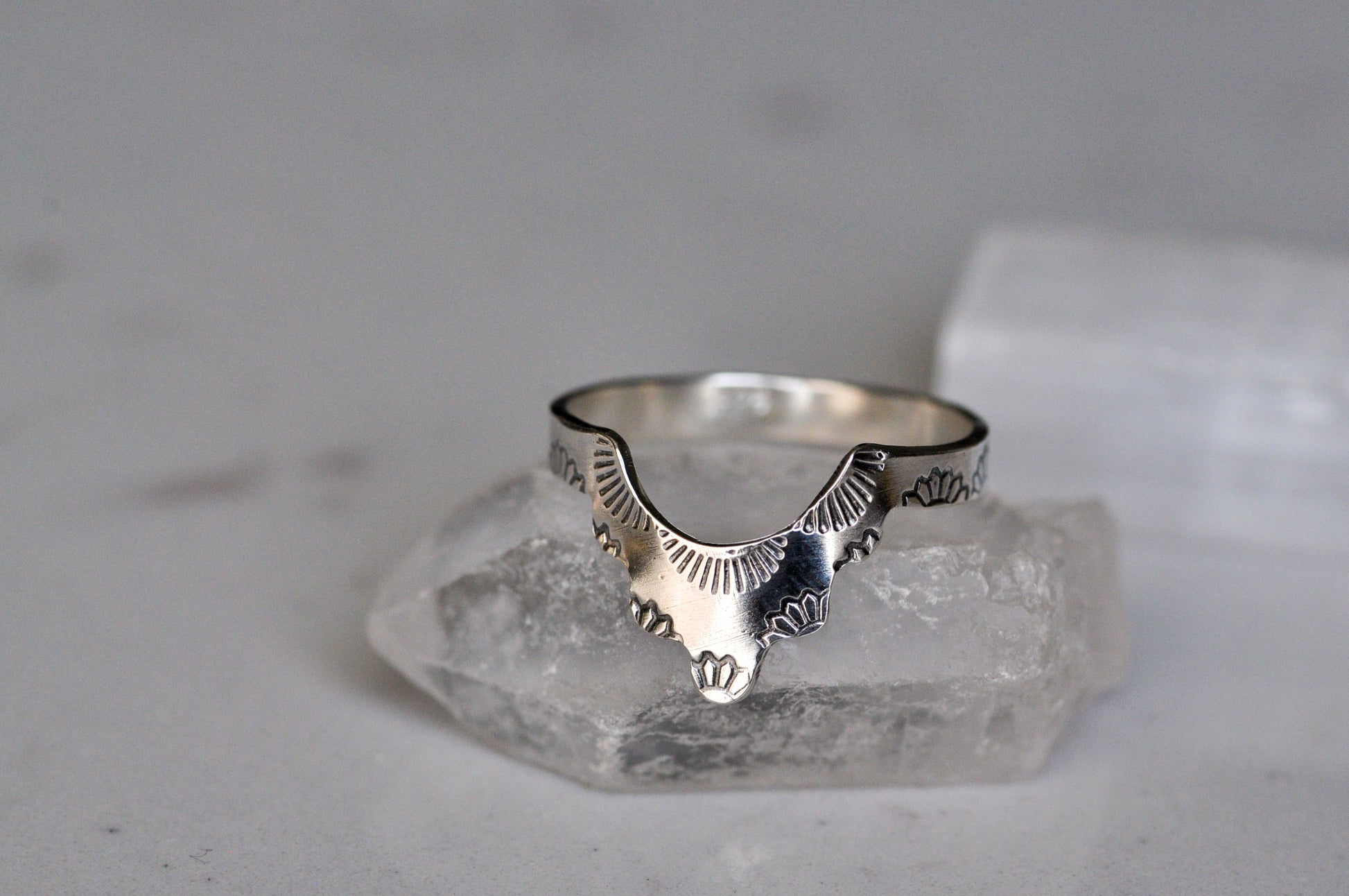 Silver Chevron Band. Each ring is hand sawed and stamped. Perfect to wear with other rings or alone!