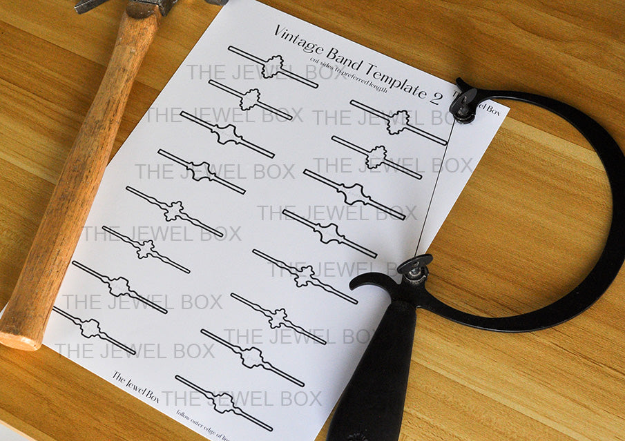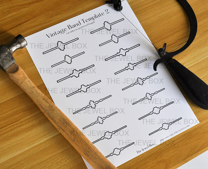 Printable vintage ring band template for metalsmithing and ring making. These are unique designs made by me that you cant get anywhere else! Once purchased you are free to reprint as many times as needed.
